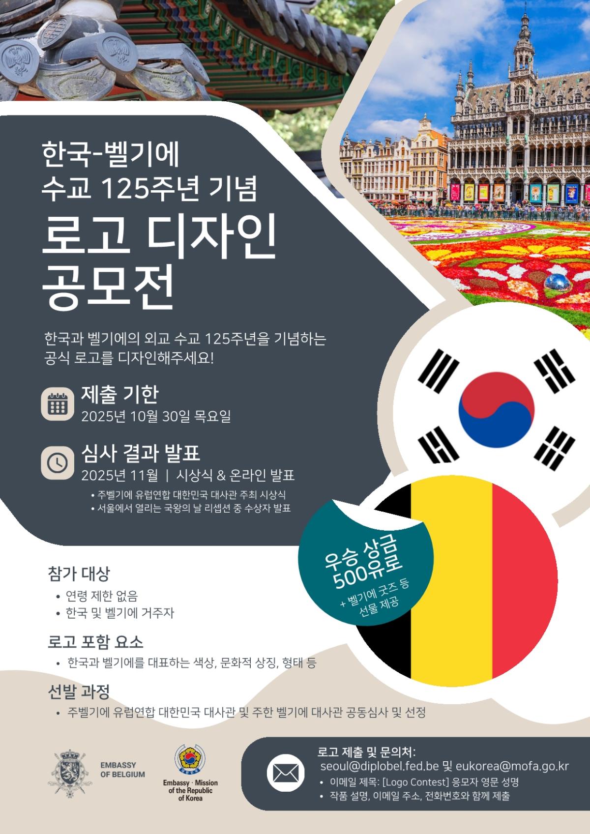 주한벨기에대사관에서 벨기에-대한민국 수교 125주년 기념 (1901–2026) 로고 디자인 공모전을 개최하오니 관심 있는 학생 분들의 많은 참여 바랍니다.