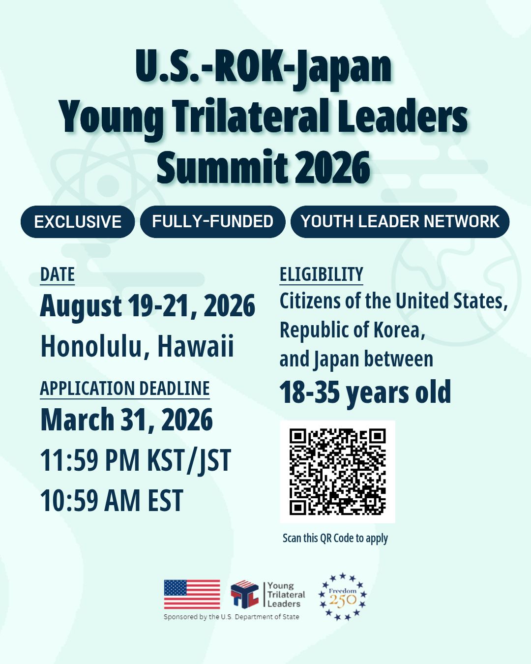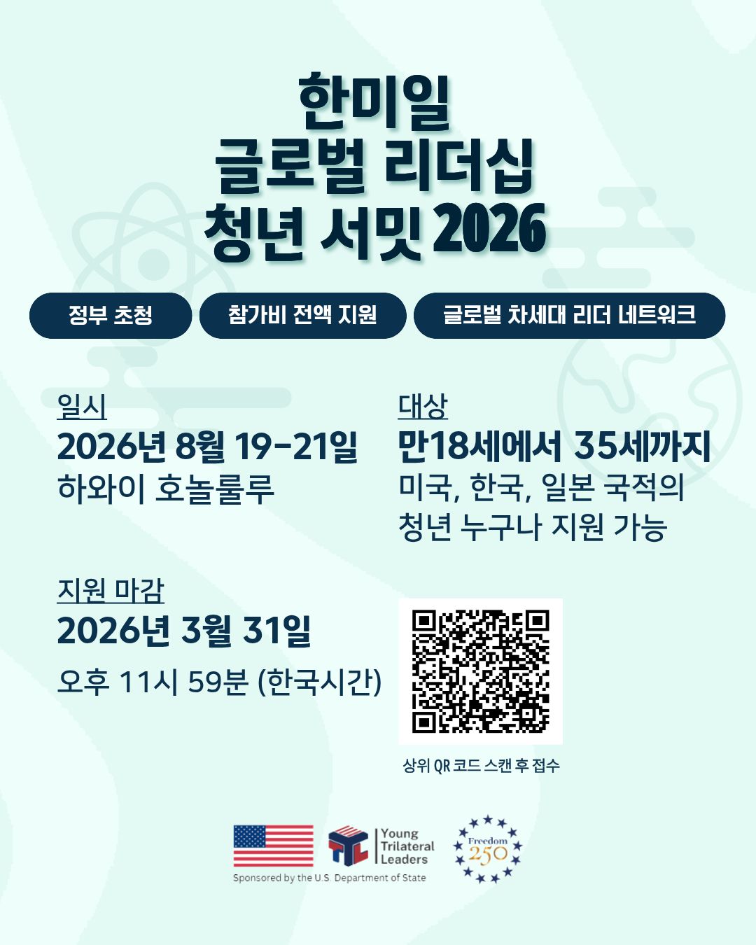 주한 미국대사관과 주일 미국대사관에서 “2026 Young Trilateral Leaders (YTL) Summit”을 개최합니다.